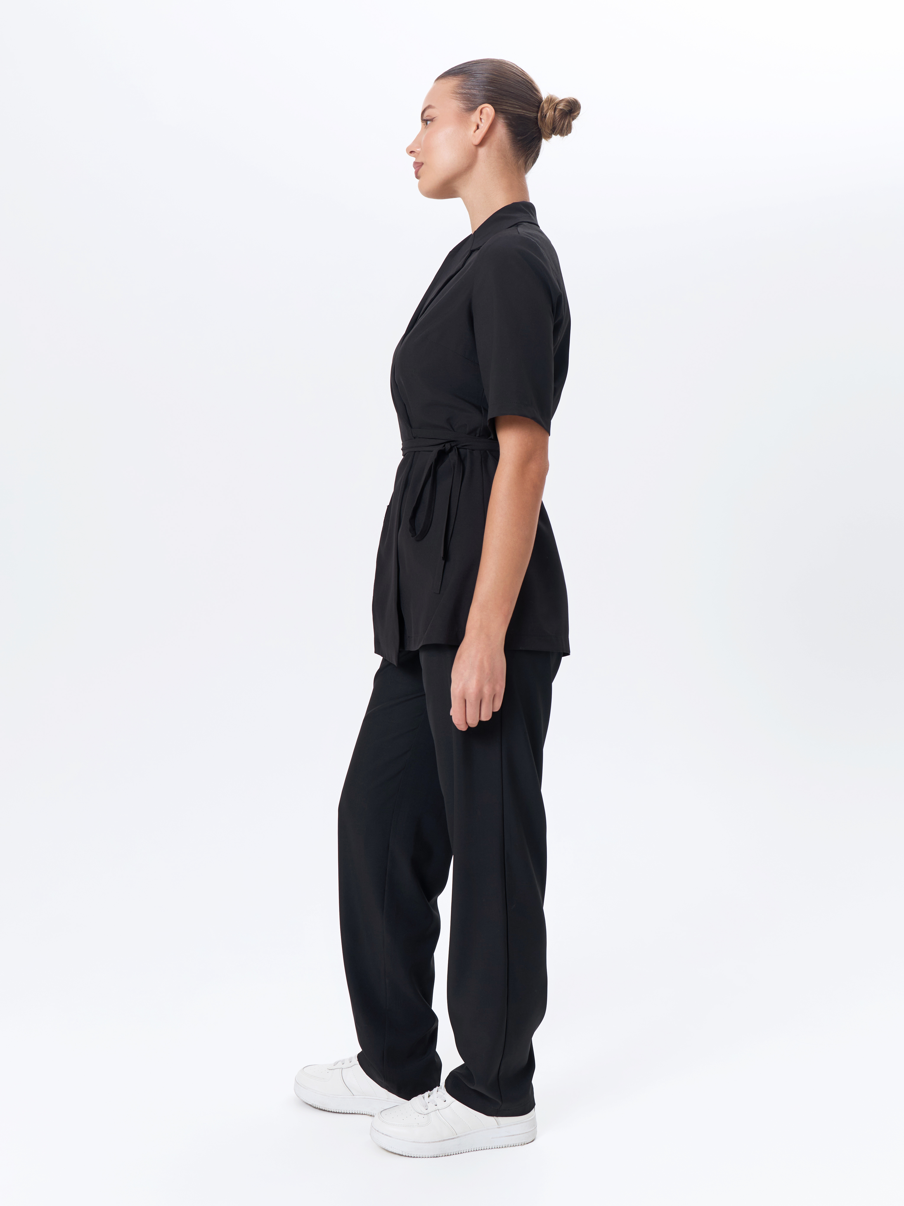 • Современный крой спецодежды с брюками и рубашкой — стильно даже в салоне