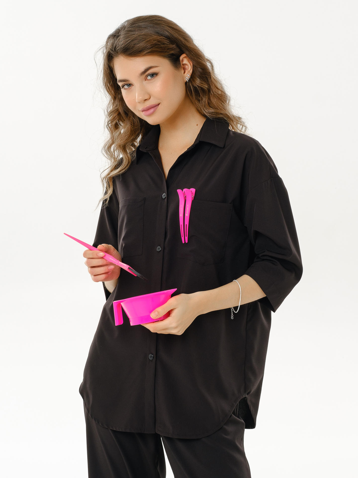 Стильная оверсайз рубашка подойдёт для beauty мастера из любой ниши. Блуза из стрейча отличный вариант как для парикмахера, так и для мастера маникюра. Свободный крой и лаконичный дизайн идеально вписываются в концепцию топовых студий красоты.